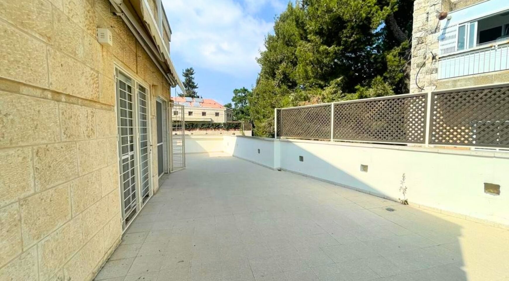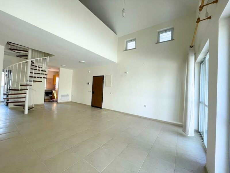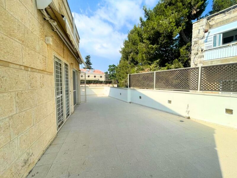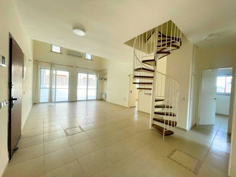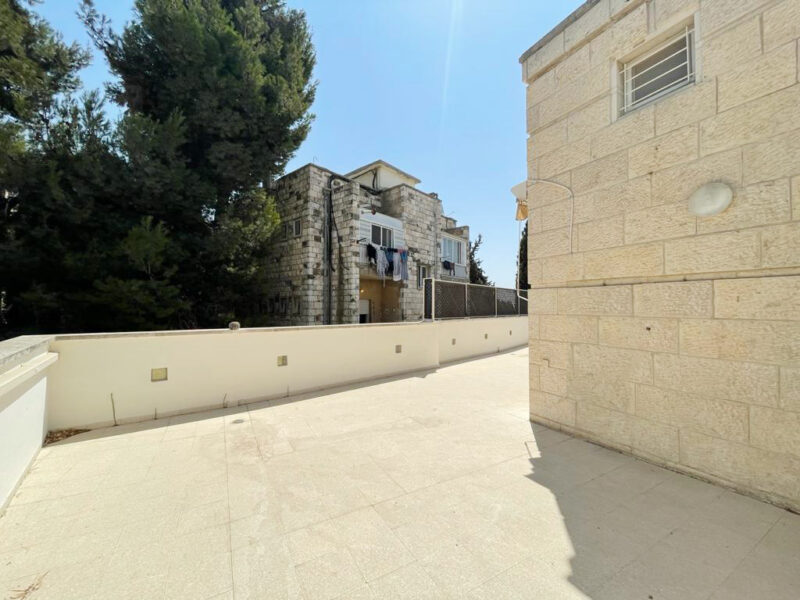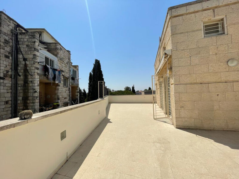 A spacious 150 SQM duplex penthouse apartment, with 4 bedrooms, 2 full bathrooms, parking, storage, elevator, and a 70 SQM Sukah terrace. The apartment is in excellent condition, with deco heat radiators, AC, a kitchen with lots of counters & closet space.