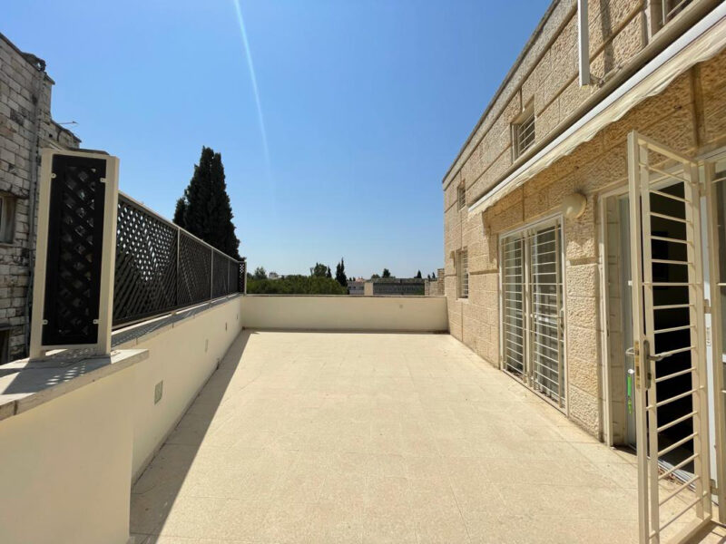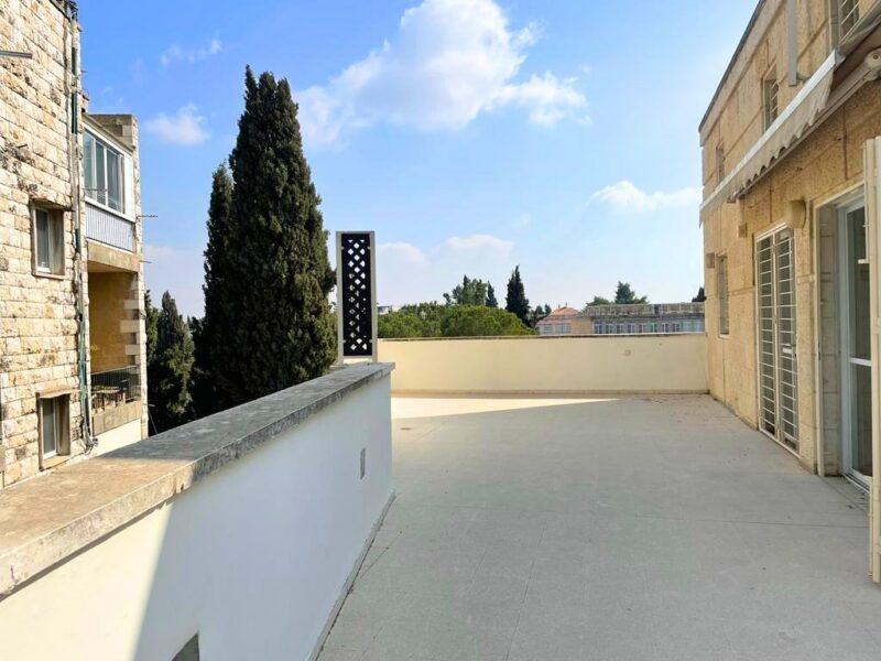 In one of the most sought-after buildings and best locations in Jerusalem, a unique 150 SQM penthouse apartment on the border of Sharrei Chessed and Rehavia