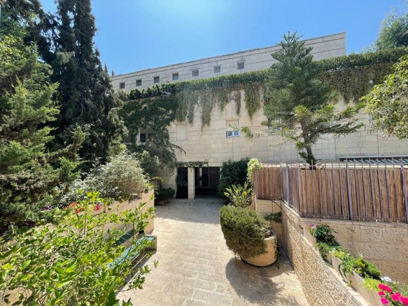 A special property to hit the market, in an excellent building with underground parking in the center of Jerusalem. The building, Narkis Court, is set back off the main street, creating a quiet oasis for its residents. There are two main access points to the building, one via the parking lot with 2 elevators, or a pathway leading to the building’s entrance.