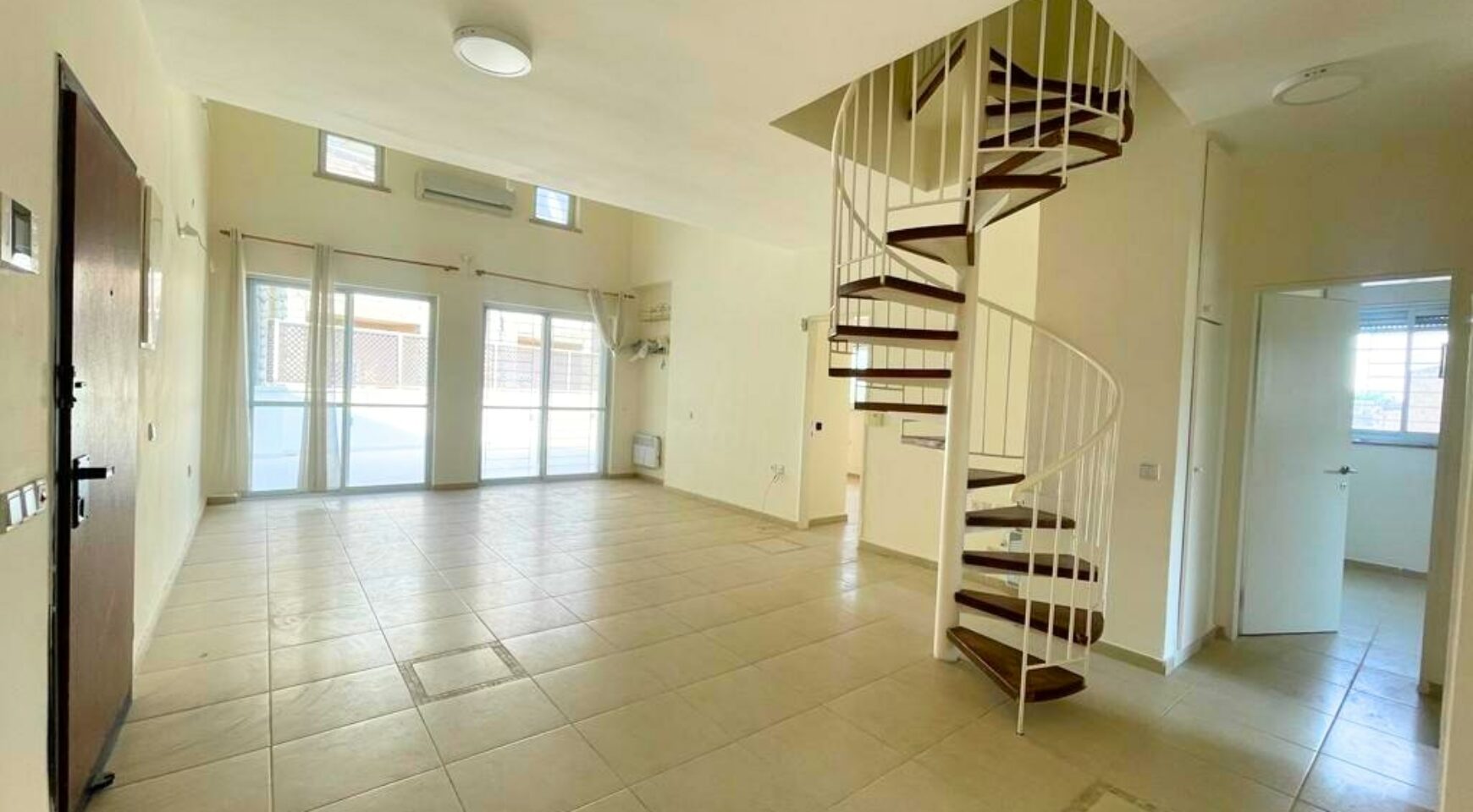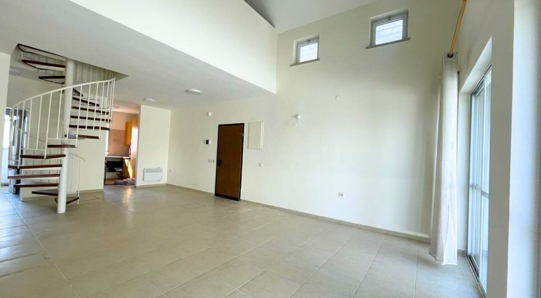 Entrance level: Living room with high ceilings and an exit to the 70 SQM terrace, kitchen, master ensuite with a walk-in closet, guest bedroom, a full bathroom, and laundry rooms.